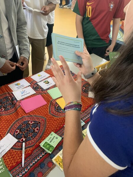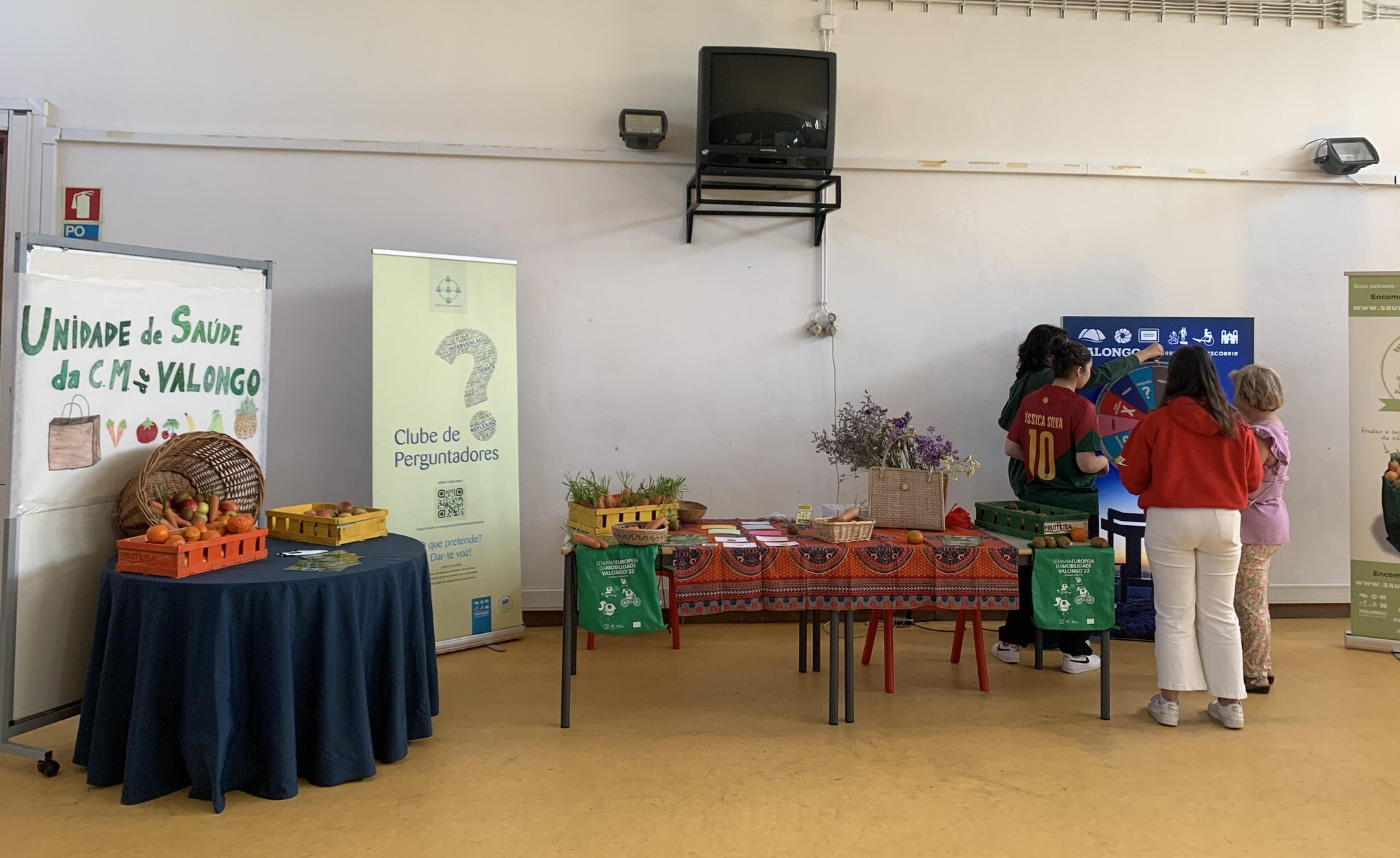 Ao longo do dia foram realizadas atividades lúdicas e pedagógicas relacionadas com alimentação saudável e outras áreas no âmbito da promoção da saúde, com o apoio dos alunos e alunas que integram o Clube de Perguntadores. Frutas, legumes e vales de desconto nestes produtos, na loja da Cooperativa Agrícola de Valongo, foram alguns dos prémios atribuídos aos que passaram pelo nosso espaço.