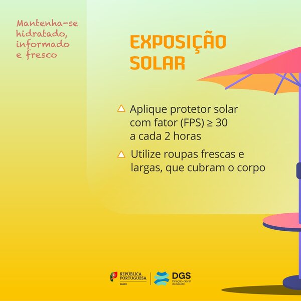 - Evite a exposição solar direta entre as 11h00 e as 17h00.
