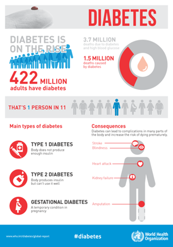 A diabetes mellitus (DM) é uma doença crónica que resulta da produção insuficiente de insulina por parte do pâncreas, ou da incapacidade do organismo de utilizar a insulina produzida (a insulina é uma hormona cuja função é fazer entrar a glicose nas células).