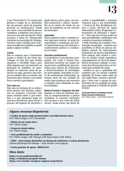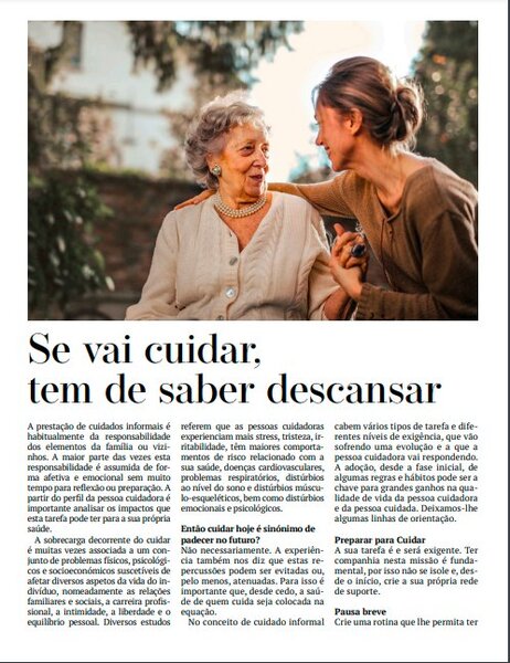Neste sentido, deixamos como sugestão de leitura o artigo "Se vai cuidar, tem de saber descansar" da nossa revista número 3 "Valongo, Melhor Saúde + Cidadania". 👇