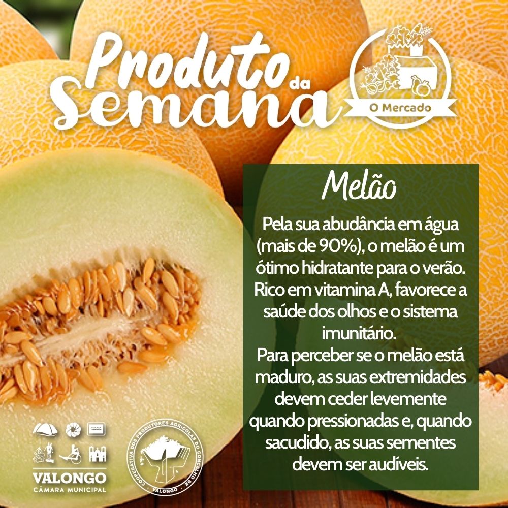 O melão é um ótimo hidratante para o verão, por ser constituído por mais de 90% de água. Rico em vitamina A, favorece a saúde dos olhos e o sistema imunitário.