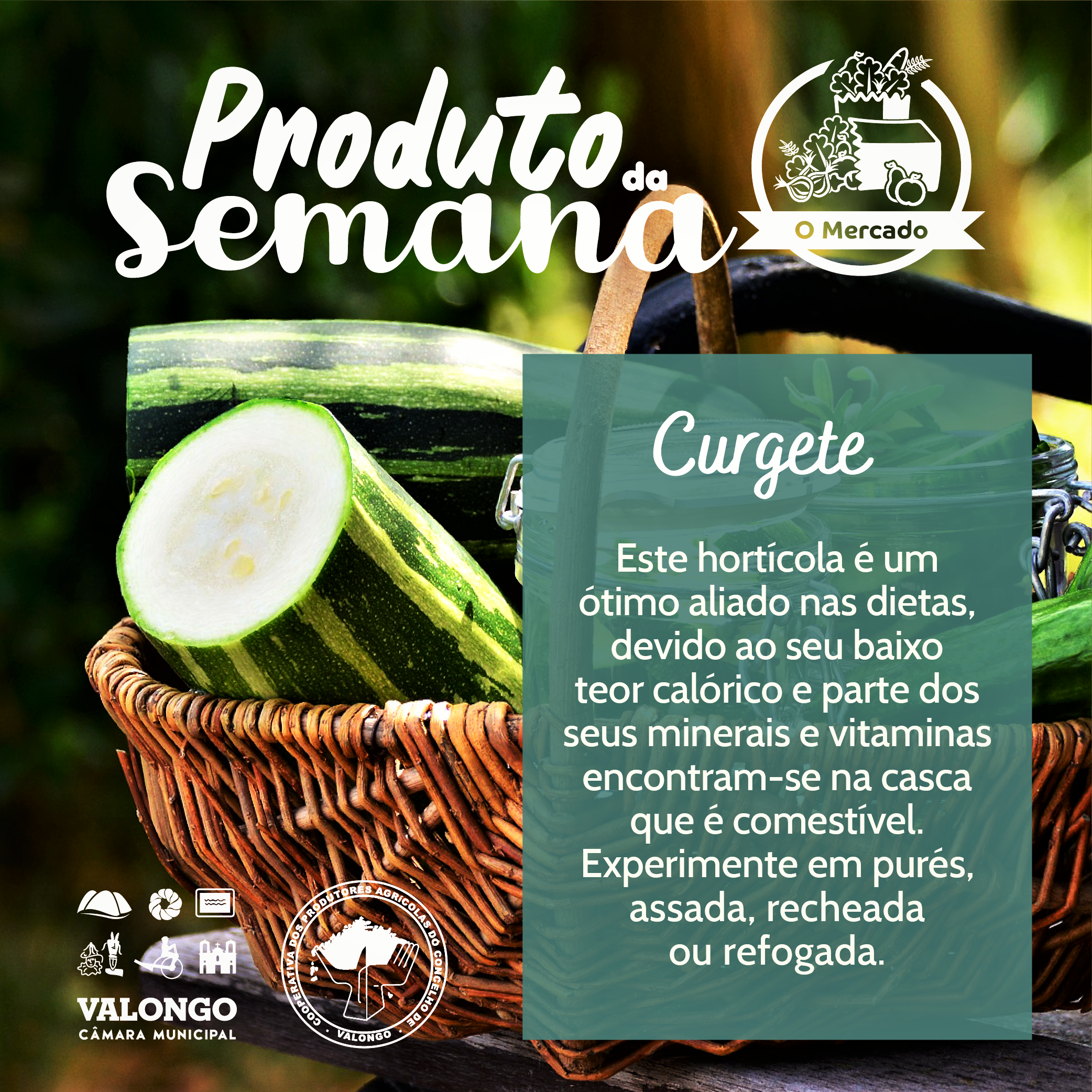 A Curgete é um hortícola que apresenta elevada quantidade de água na sua constituição e, por consequência, tem baixo teor calórico. Além disso, é excelente como acompanhamento, em puré, assada ou refogada ou como parte constituinte de sopas, enriquecendo largamente a refeição devido ao teor de vitaminas e minerais. Se deixar um pouco da casca, aumenta o valor nutricional da curgete.