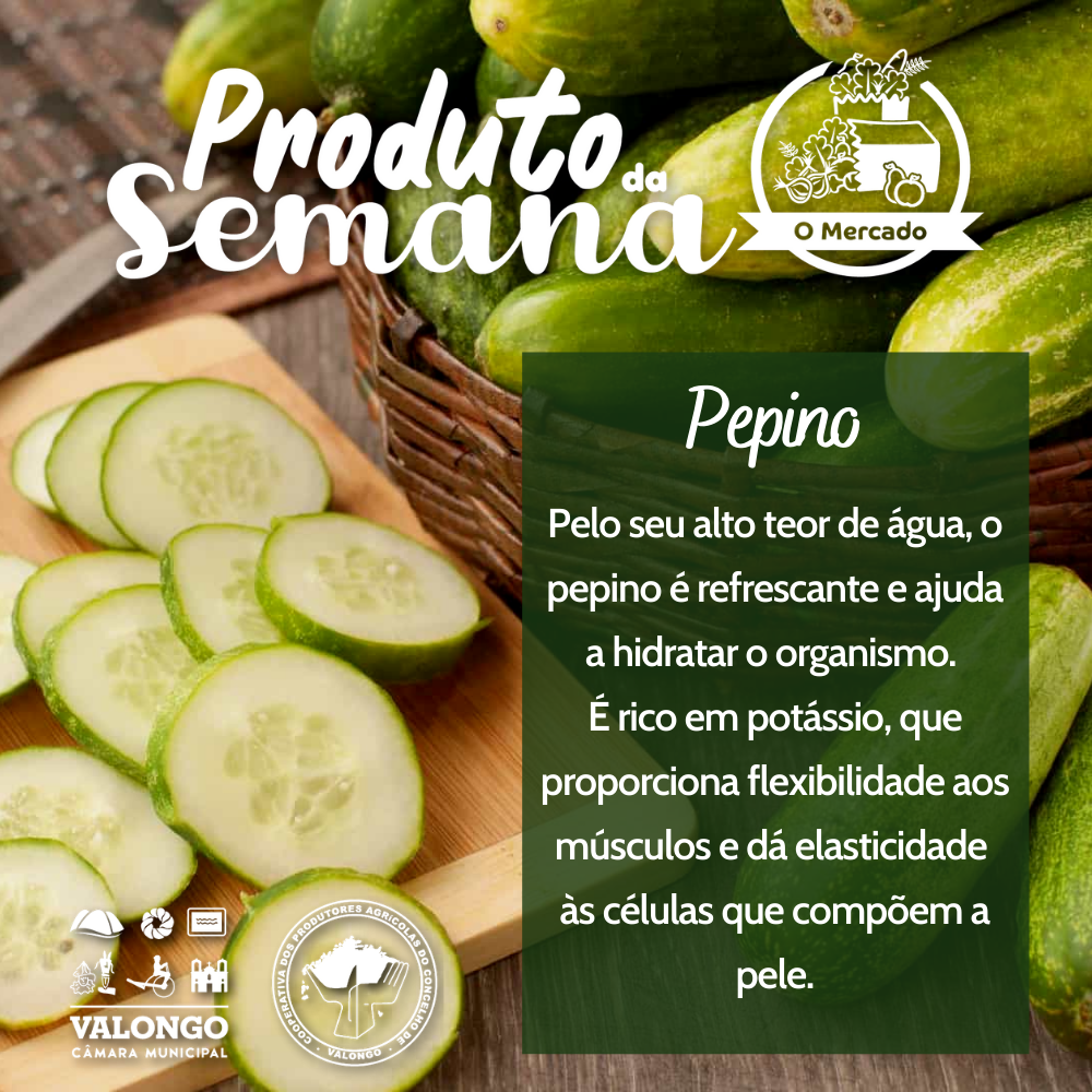 Pela sua riqueza em água, o pepino é refrescante e ajuda a hidratar o organismo. É rico em potássio, que proporciona flexibilidade aos músculos e dá elasticidade às células que compõem a pele. Pode ser consumido ao natural ou utilizado em sopas, conservas, saladas, sumos detox ou batidos.