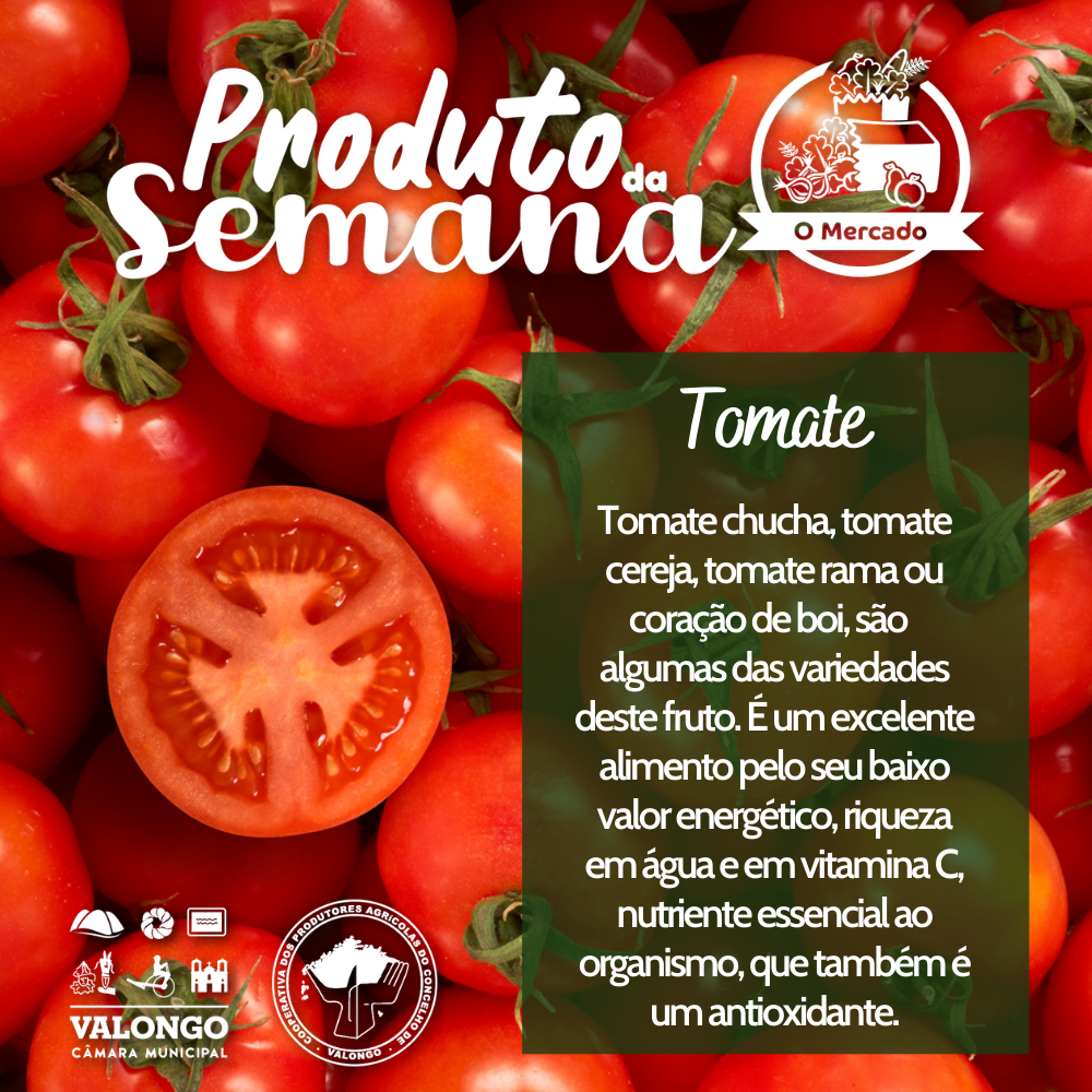 Tomate chucha, tomate cereja, tomate rama ou coração de boi, são algumas das variedades deste fruto. É um excelente alimento, pelo seu baixo valor energético, riqueza em água e em vitamina C, nutriente essencial ao organismo, que também é um antioxidante. O tomate pode ser consumido tanto cru, como cozinhado ou, ainda, seco. Experimente utilizá-lo como molho, em saladas, em sopas, em doces caseiros, recheado (com queijo ou carne picada) ou em sumos.